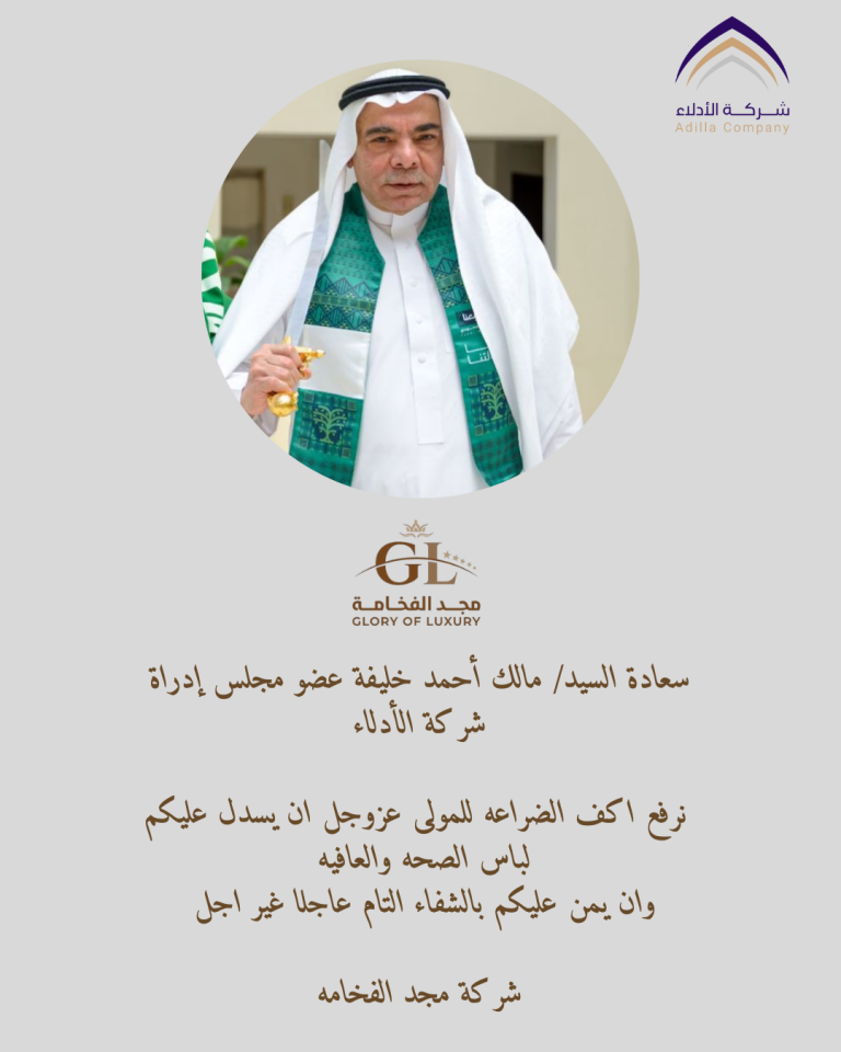 سعادة السيد/ مالك أحمد خليفة عضو مجلس إدراة شركة الأدلاء نرفع اكف الضراعه للمولى عزوجل ...